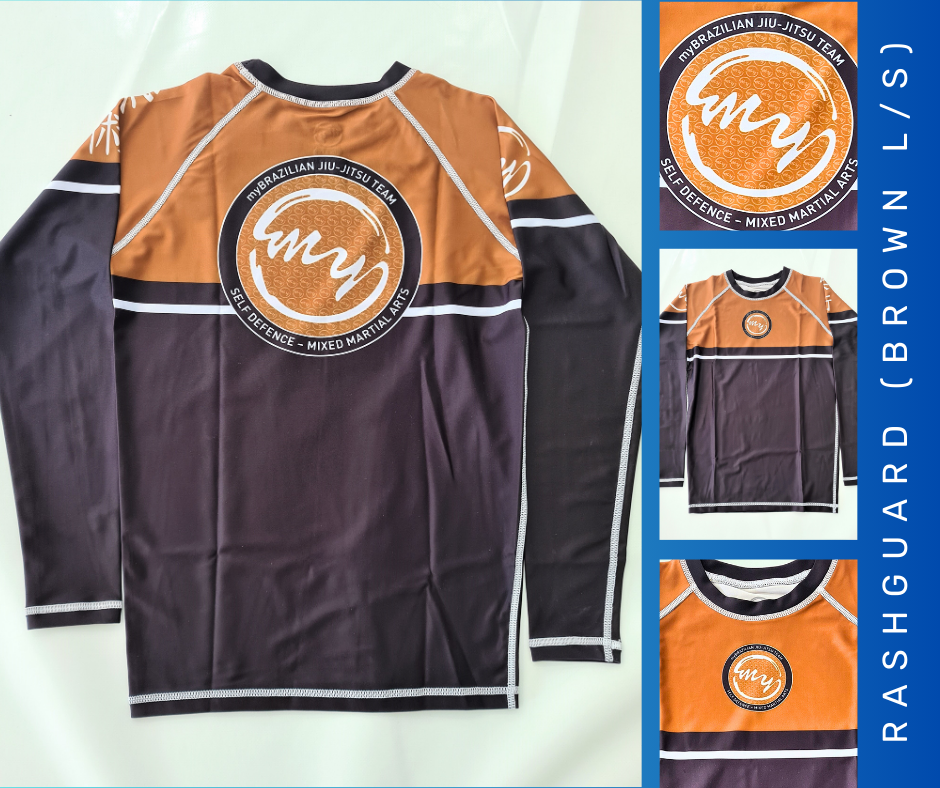 SKU: BLSRG01 - Ideal for brown belts, our rich brown long sleeve rashguard offers both style and durability. Made from premium fabric, it delivers exceptional comfort and performance, symbolizing your skill and experience in the martial arts journey.Categories: Fightwear, Uncategorized